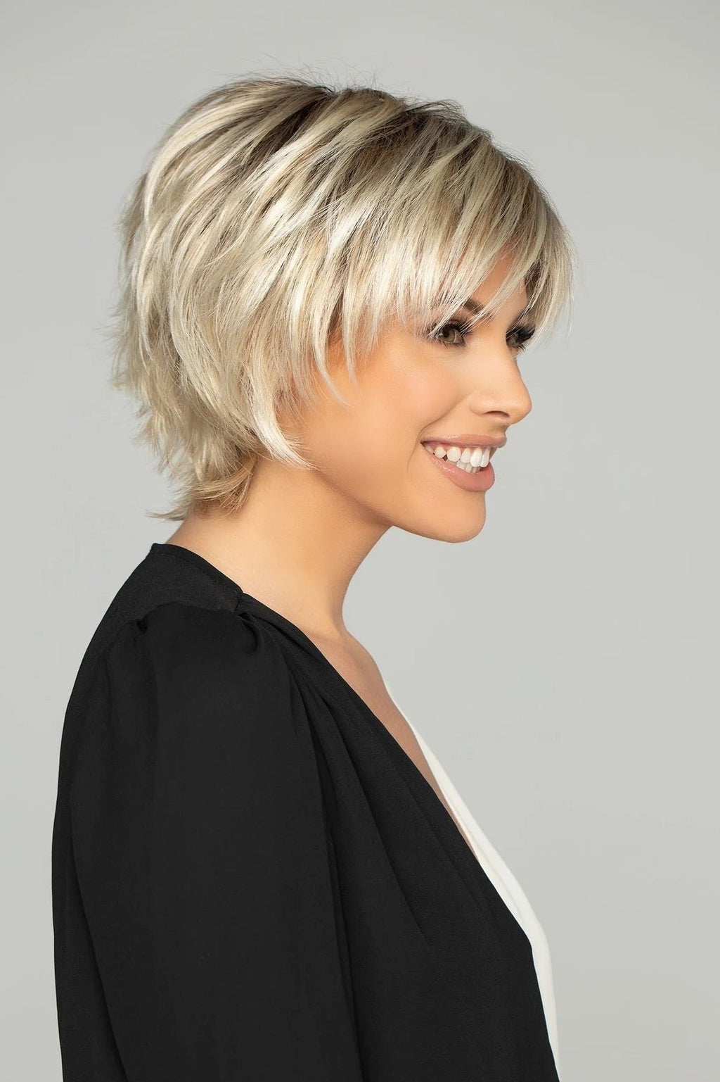 Experience effortless elegance with Ellen by WigPro, a short and layered wig featuring ready-to-wear textured styling.