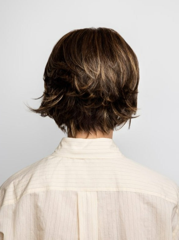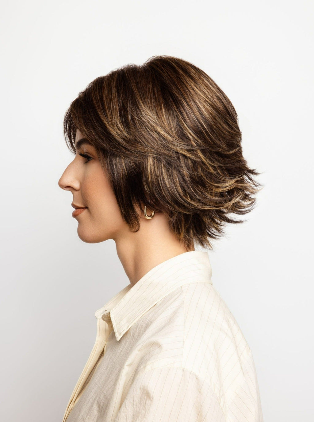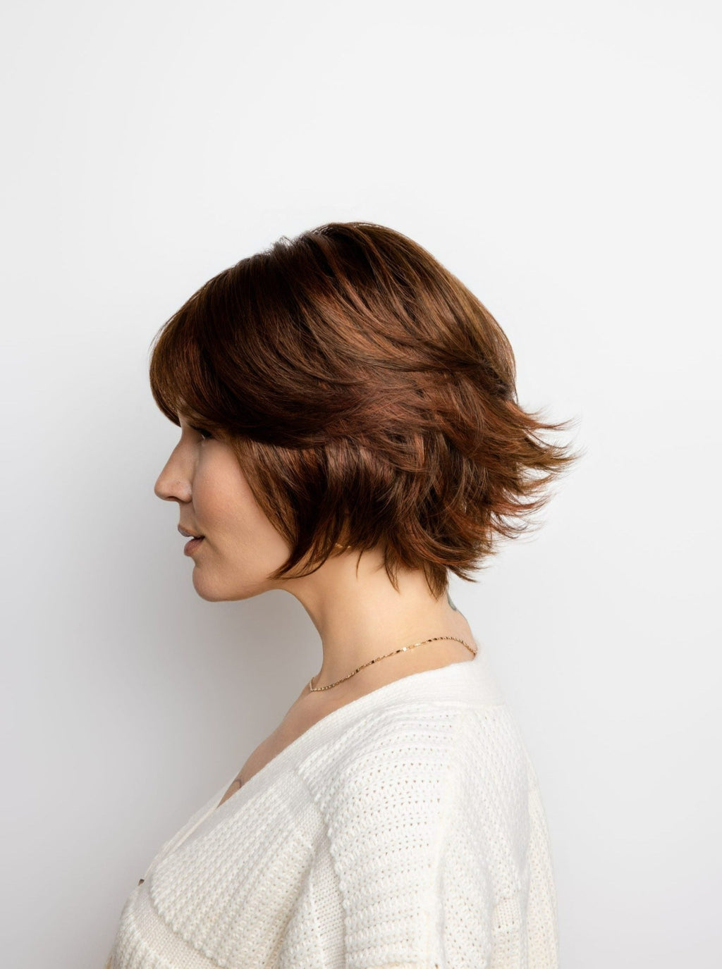 Experience the stunning style of Glenn by Amore, a synthetic wig featuring a charming bob cut and tapered fringe. With a monofilament cap and softnet material for superior air flow and comfort, this short wig offers a flawless hairline thanks to its wider lace front. Elevate your look with confidence and ease.