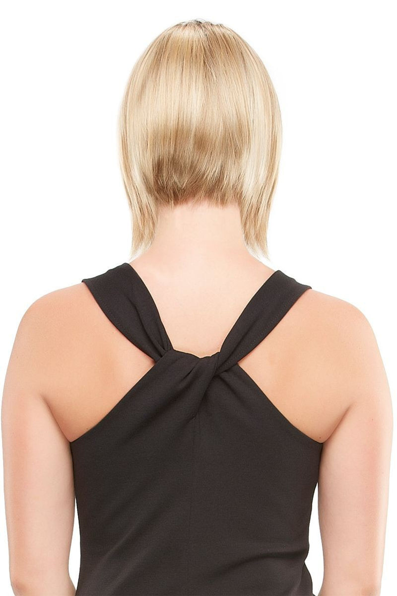 Victoria by Jon Renau SmartLace Collection is a sleek straight modern designed angled bob style. Layers at the crown and along the sides give maximum volume and movement. Victoria base construction incorporates an impeccable extended lace front which offers you a natural hairline allowing for off the face styling. The monofilament top resembles the most realistic hairline and enables parting versatility and multi-directional styling. The detailed 100% hand-tied cap is where each and every hair has been individually weaved.