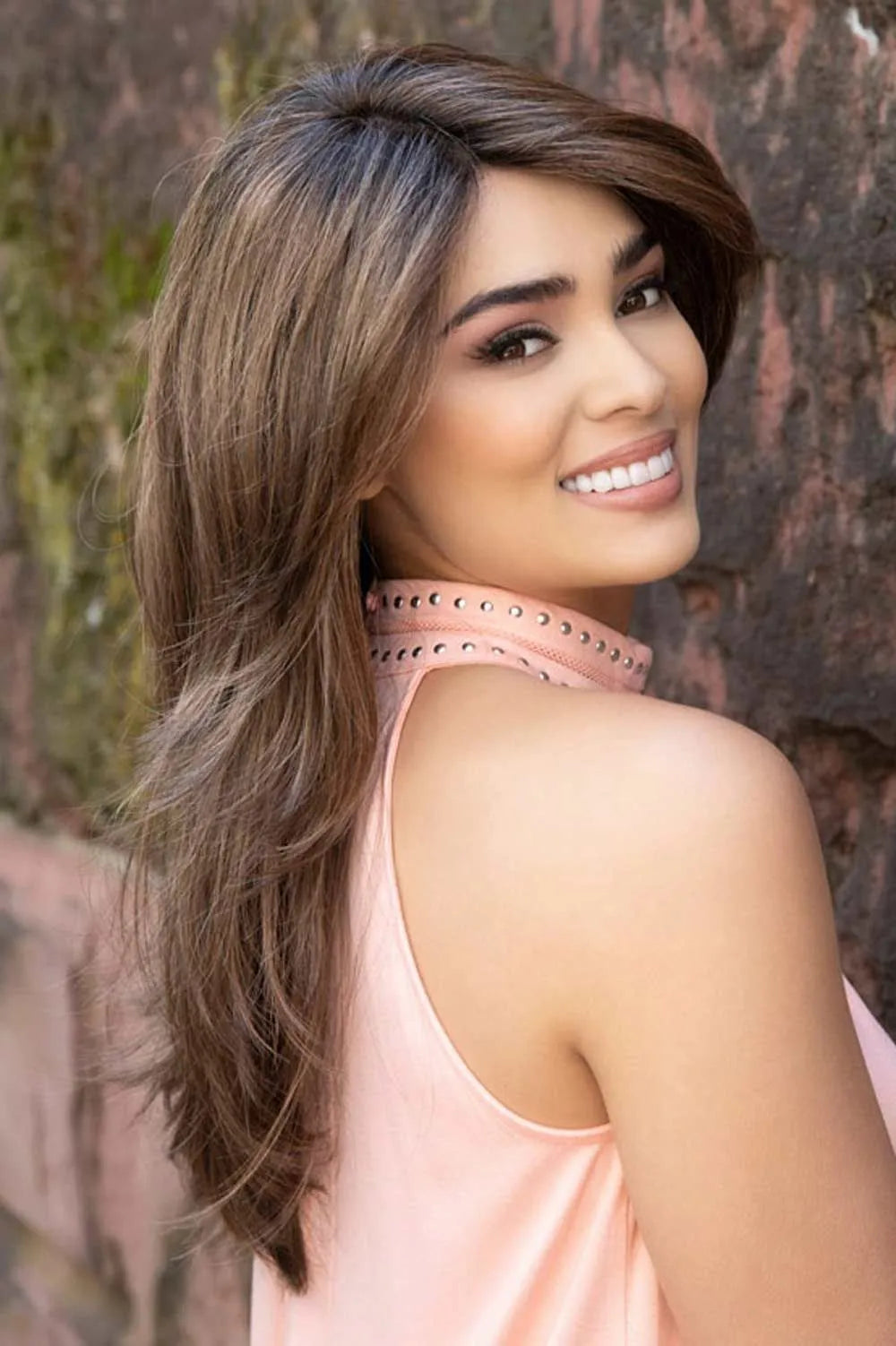 Get ready to turn heads with Brooke by Envy Wigs, a stunning long synthetic wig that will enhance your natural beauty. The hand-tied lace front creates a realistic hairline and allows for versatile styling. With a full hand-tied monofilament top, you can easily change the part and create different looks. Plus, the longer bang and fringe can be personalized by your stylist. This style is all about layers, movement, and body, giving you a glamorous and confident look. The pre-cut lace front and sheer monofilament top add even more natural-looking details, while the straight synthetic hair is designed to keep its shape in any weather, even after washing.