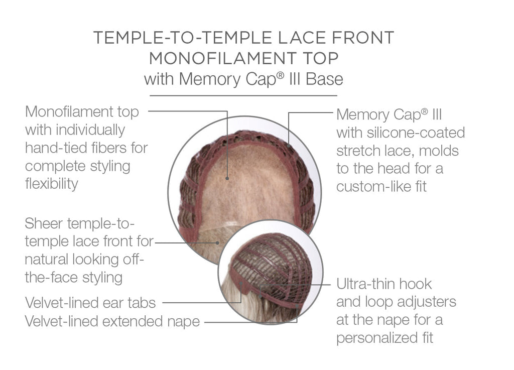 • base design: monofilament part – creates the illusions of natural hair growth and allows you to part the hair in any direction.
