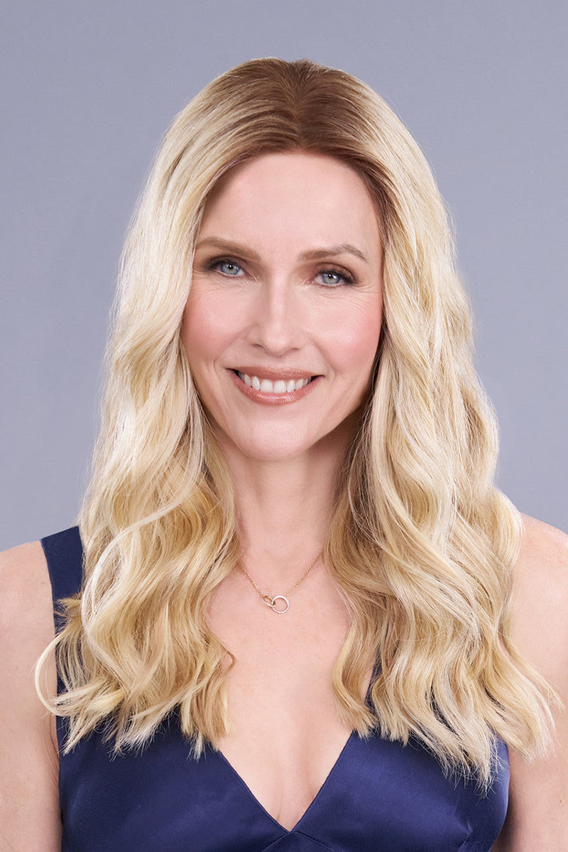Crafted with heat friendly fiber, the Top Trend Lace HD Wavy 18” topper offers soft, flowing waves with superior coverage and versatile styling. Perfect for mid to progressive hair loss, the extended SmartLace™ front delivers an undetectable hairline, while the double monofilament top allows for flexible parting without exposing the front clip. A machine-wefted back adds density and six secure clips ensure a comfortable, reliable fit. This heat friendly topper holds its natural wave—just scrunch to refresh the curl pattern after washing.Top Trend Lace is available in grey shades, introducing Jon Renau’s first ever 18" grey topper.