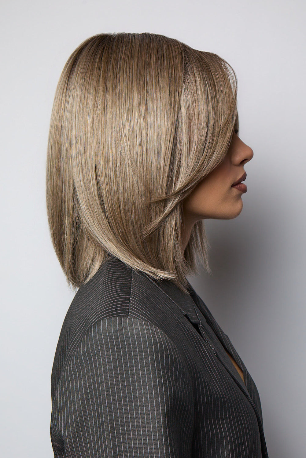 Meet Ila, a classic bob reimagined in the René of Paris Hi-Fashion Collection. Crafted with heat-friendly synthetic fibers, this short to medium-length wig features a beautifully layered, collar-length cut for a polished yet natural look. The ready-to-wear design includes an extended lace front and wide monofilament part for a realistic hairline, plus velour ear tabs, extended nape tabs, and an adjustable Velcro strap for all-day comfort. Ila is an easy, sophisticated style that transitions effortlessly from day to night.