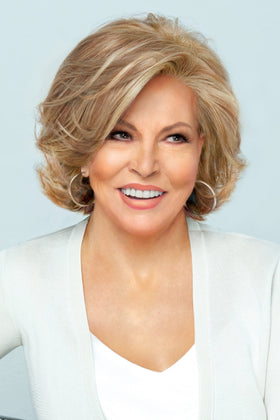 Upgrade your style with Raquel Welch's Selfie Mode, featuring luscious layers and a wavy texture. This long wig is crafted with Tru2Life synthetic fibers that can withstand heat, allowing you to customize your look to perfection. The realistic temple-to-temple lace front creates a natural hairline, while the Memory Cap III ensures a comfortable and secure fit. With a full monofilament top, this wig mimics the appearance of real hair growing from your scalp.