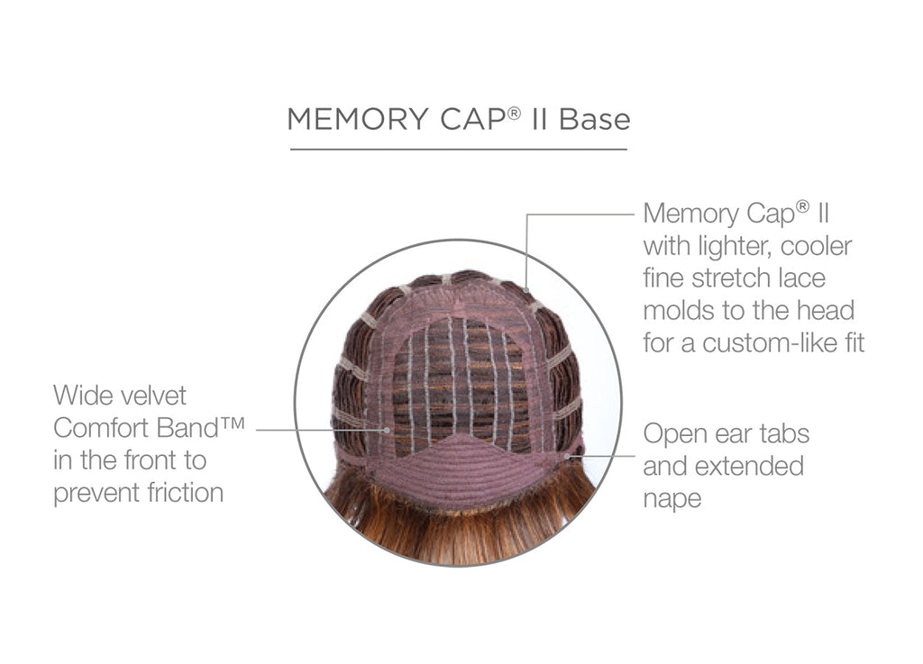 • base design: memory cap- Made from fine, resilient and stretchy lace, the durable cap in this wig provides a superior fit. A memory cap that actually memorizes the shape of your head to give you the ultimate in light comfort and fit.