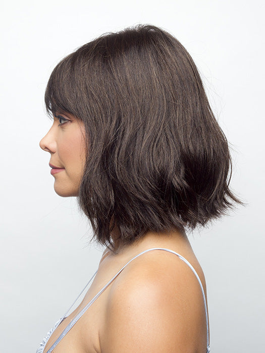 Alexi by Noriko is a textured bob with loose wavy ends and a lace front for off the face styling. Alexi is created with a lace front in a basic lightweight cap construction with wefted sides and back allowing for a cool and comfortable fit. Made with a permatease top which is a teasing, short haired, crimping effect on the roots to create more lift and volume.