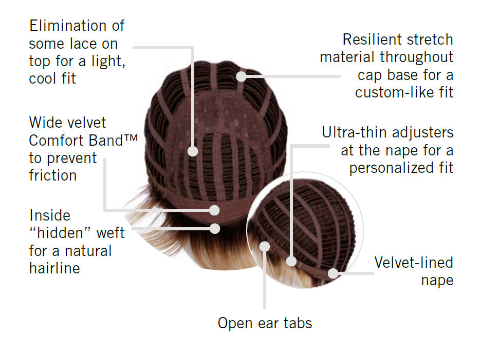 • base design:  the open wefting in the basic cap creates better air ventilation, which provides more coolness on the scalp. It's breathable and lightweight for a more comfortable fit.