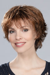 Club 10 by Ellen Wille synthetic wig is a textured flip out short design wig with extreme layering throughout. Featuring in a lightweight basic cap construction, with wefted sides and back allowing comfort and maximum scalp cooling and a monofilament crown that resembles the most realistic hairline on top.