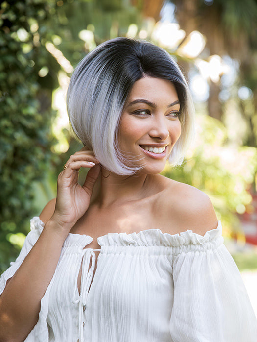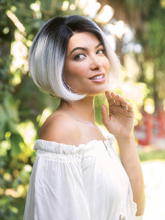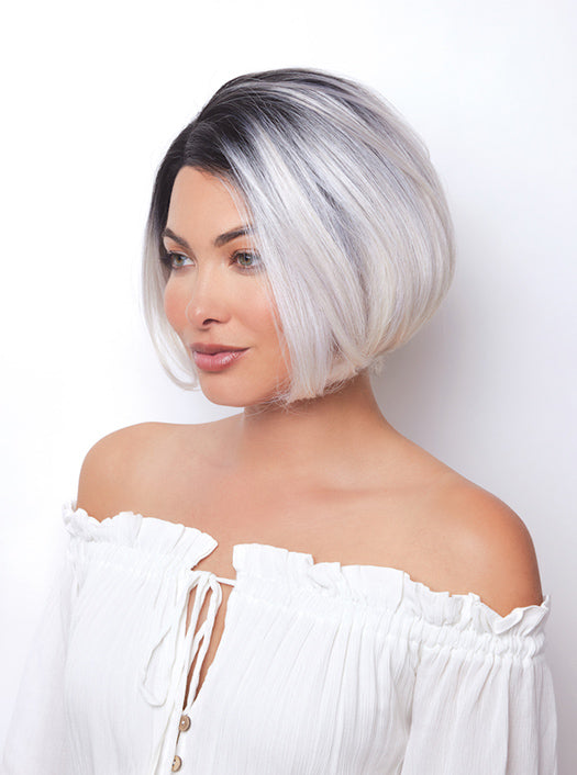 Fabulous by Orchid Collection is a chin-length heat synthetic bob that features a lace front for off-the-face styling and a monofilament part for the appearance of natural hair growth.