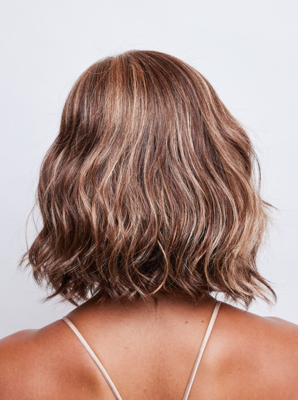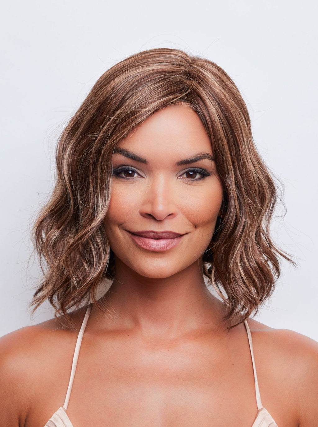 Discover the show-stopping neck-length beach wave wig, Merrill, from the Noriko Collection. Made with Noriko's newest Natural Movement fiber blend, this stunning wig offers the perfect ready-to-wear look and feel, without the excess shine. With a lace front and lace part, achieve a natural-looking hairline and adjust the tabs in the nape for a comfortable and snug fit all day.