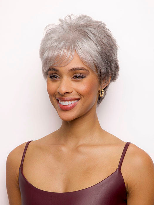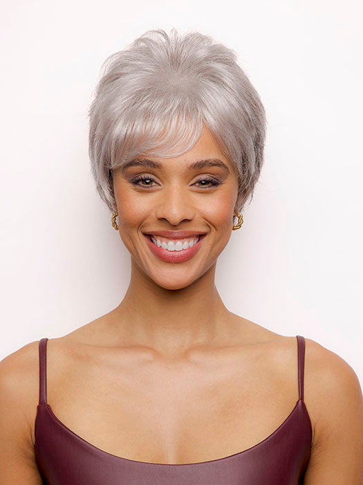 Rina by Rene of Paris part of the Hi Fashion Collection, is a gorgeous pixie cut with feathery layers and soft, wispy fringe. Featuring an open weft cap construction allowing for an airy cool design which is lightweight and ideal for everyday wear. Made with a permatease top which is a teasing, short haired, crimping effect on the roots to create more lift and volume.