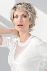 Vanity by Ellen Wille part of the Hair Society synthetic wig is textured, layered flipped out hair design. Vanity base construction consists of an invisible lace front which blends naturally against your hairline for off the face styling and a monofilament top that resembles the most realistic hairline and enables parting versatility and multi-directional styling.