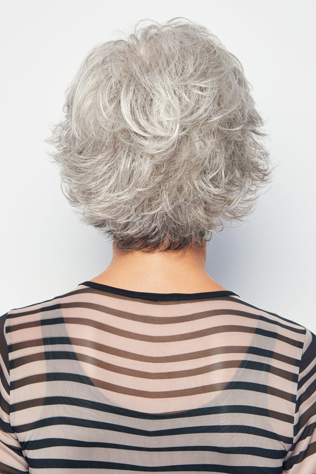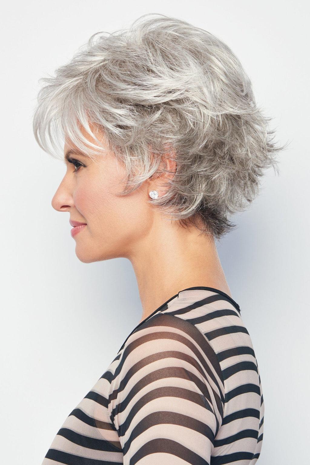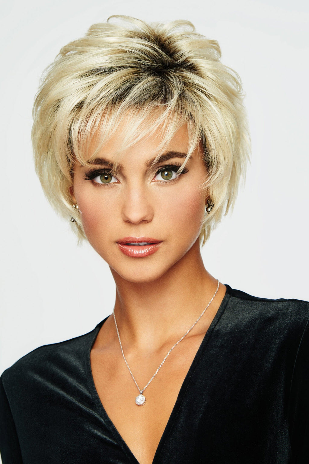 Voltage by Raquel Welch synthetic wig is created with flipped out layers and a swept side bang. Voltage features an open weft cap construction allowing for an airy cool design which is lightweight and ideal everyday wear. Made with a permatease top which is a teasing, short haired, crimping effect on the roots to create more lift and volume.