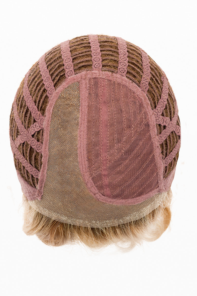 This type of cap features a wonderfully natural crown or “crest” area, where each and every hair has been individually weaved. This area varies on all models, depending on the style, it is usually either pointed or elongated. The wig looks particularly natural in areas where the skin is visible, as the weave of wig hair appears to flow directly from your own scalp, just like natural hair growth. The rest of this wig mostly consists of a wefted cap in which the hair is sewn into fine cotton tapes. Wefted caps adapt very well to the shape of the head and allow air to circulate.