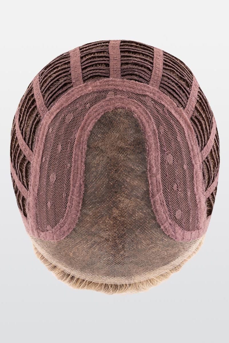 Wefted cap features a wonderfully natural crown or “crest” area, where each and every hair has been individually weaved. This area varies on all models, depending on the style, it is usually either pointed or elongated. The wig looks particularly natural in areas where the skin is visible, as the weave of wig hair appears to flow directly from your own scalp, just like natural hair growth. The rest of this wig mostly consists of a wefted cap in which the hair is sewn into fine cotton tapes. Wefted caps adapt very well to the shape of the head and allow air to circulate.
