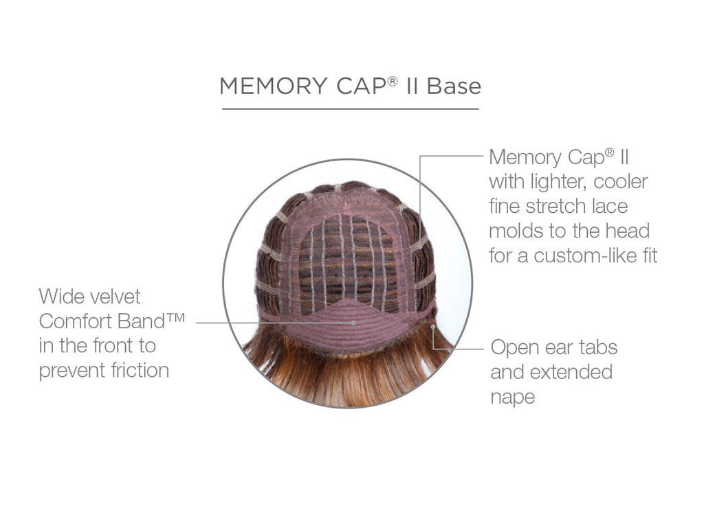 • base design: memory cap- Made from fine, resilient and stretchy wefts, the durable cap in this wig provides a superior fit. A memory cap that actually memorizes the shape of your head to give you the ultimate in light comfort and fit.