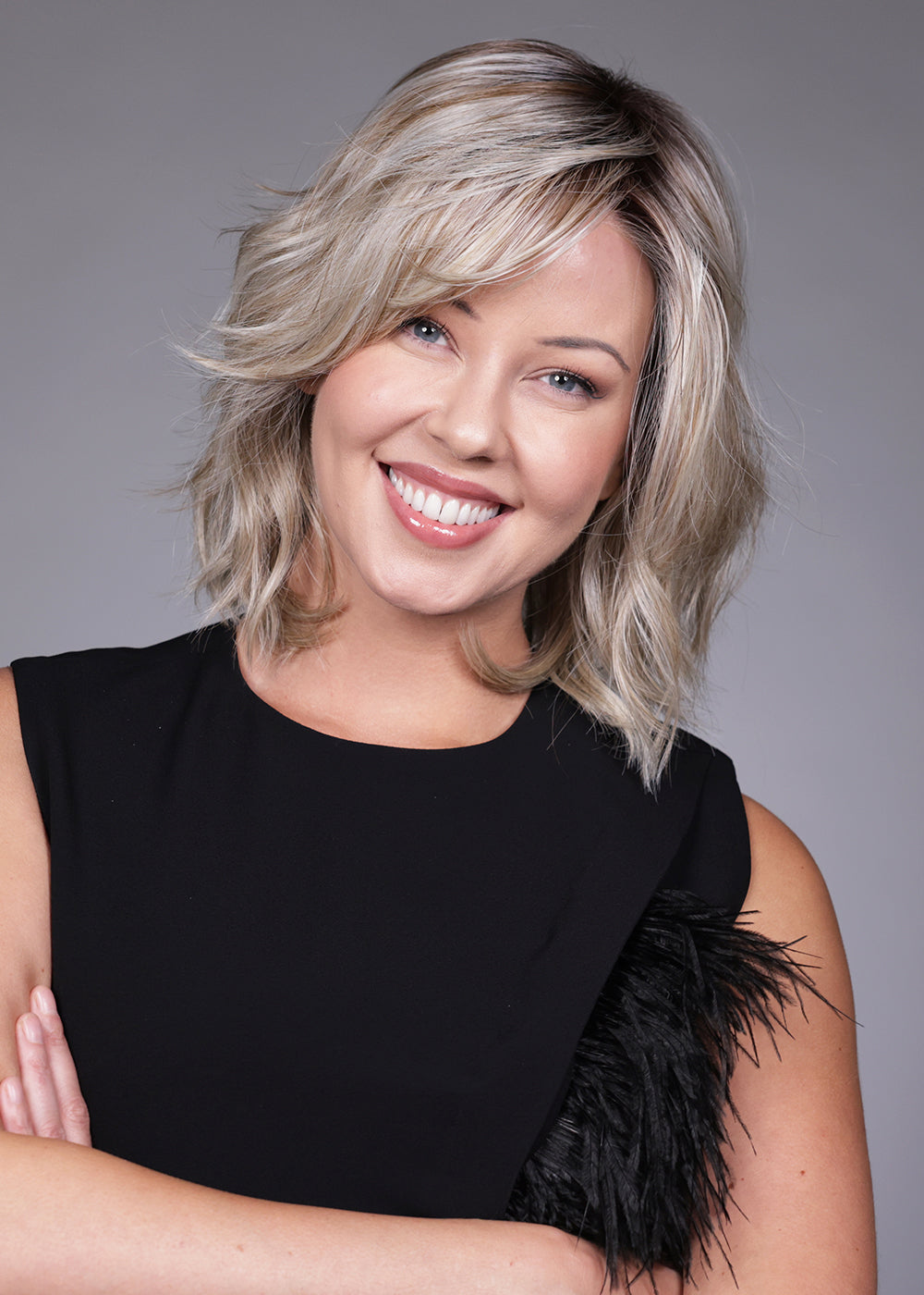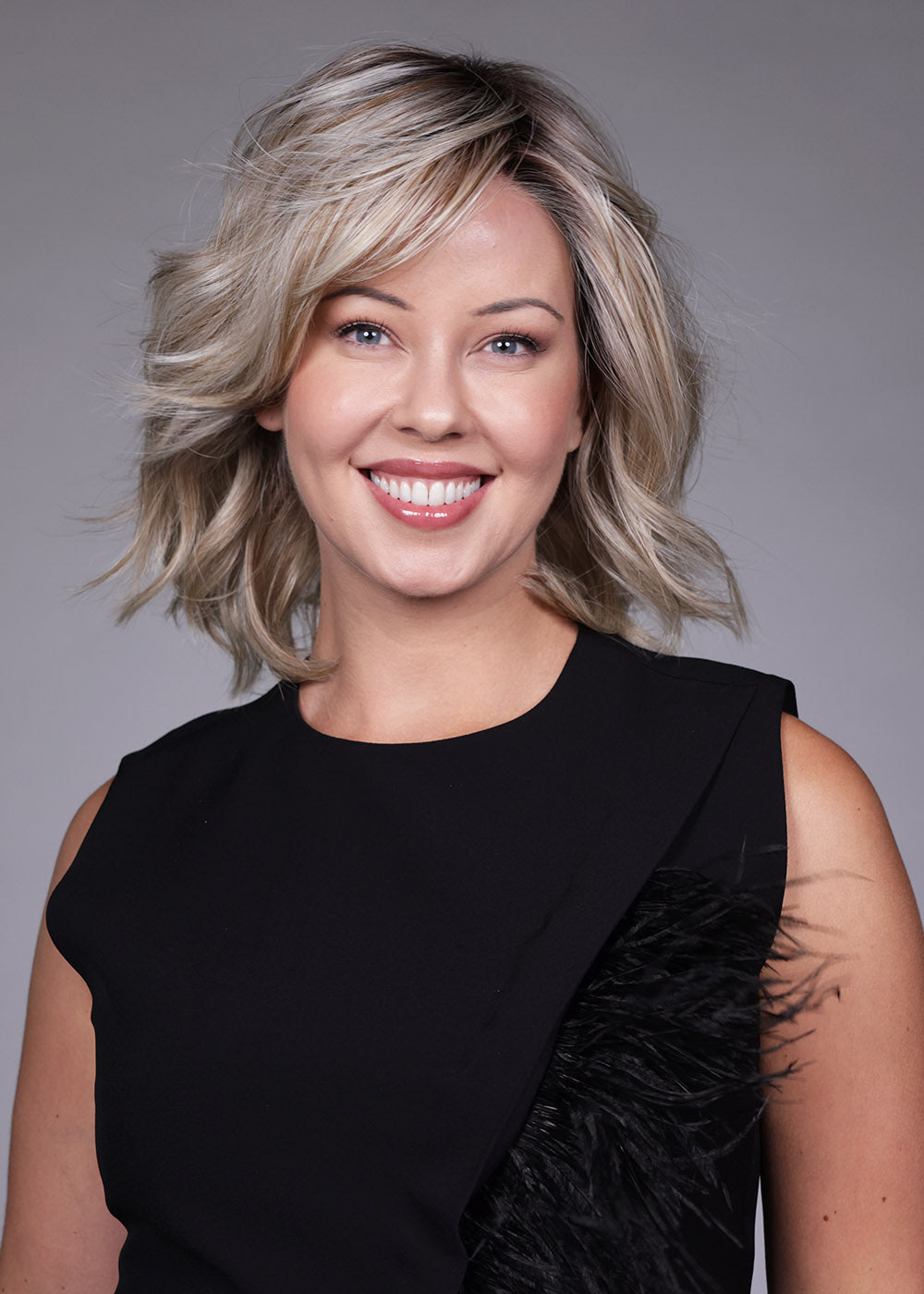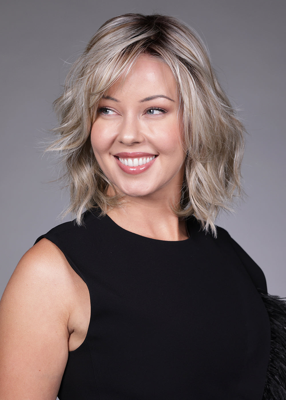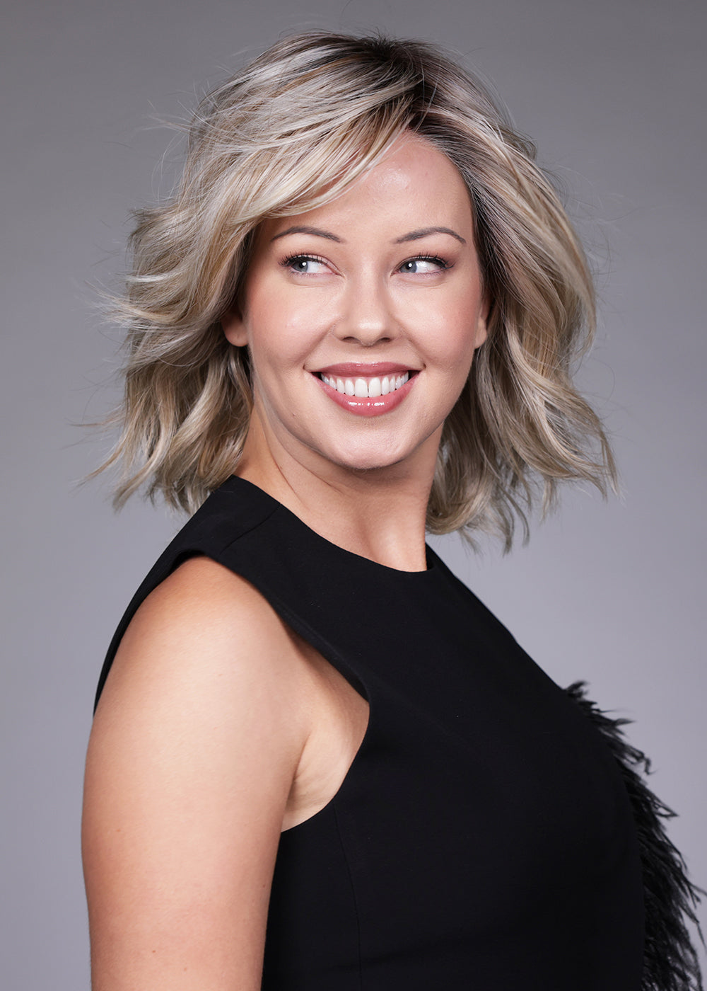 Donna by Belle Tress from the Lux SE Collection is a refined, shoulder-skimming bob designed with softly tousled layers and natural movement. This modern silhouette delivers airy volume and a relaxed yet polished finish, making it ideal for both everyday wear and elevated evening looks. Crafted with heat-friendly synthetic fiber, Donna offers styling versatility—wear the textured layers as styled, enhance the waves with gentle heat, or smooth the look for a sleeker profile. An extended lace front creates a seamless, natural hairline, while the full monofilament, hand-tied cap allows for multi-directional parting, realistic movement, and exceptional comfort. The result is a contemporary bob that blends elegance, realism, and effortless wearability.