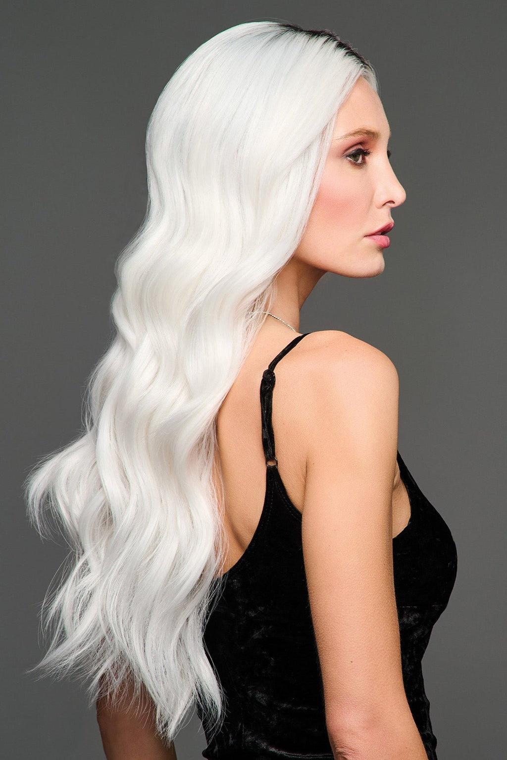 Ethereal Ice from Hairdo’s HD Fantasy Wigs Collection offers a striking look with its frosty white color contrasted by dark roots. This long, layered wig, made from Tru2Life heat-friendly synthetic fibers, reaches mid-back and features gentle, flowing waves that create a magical, captivating style.