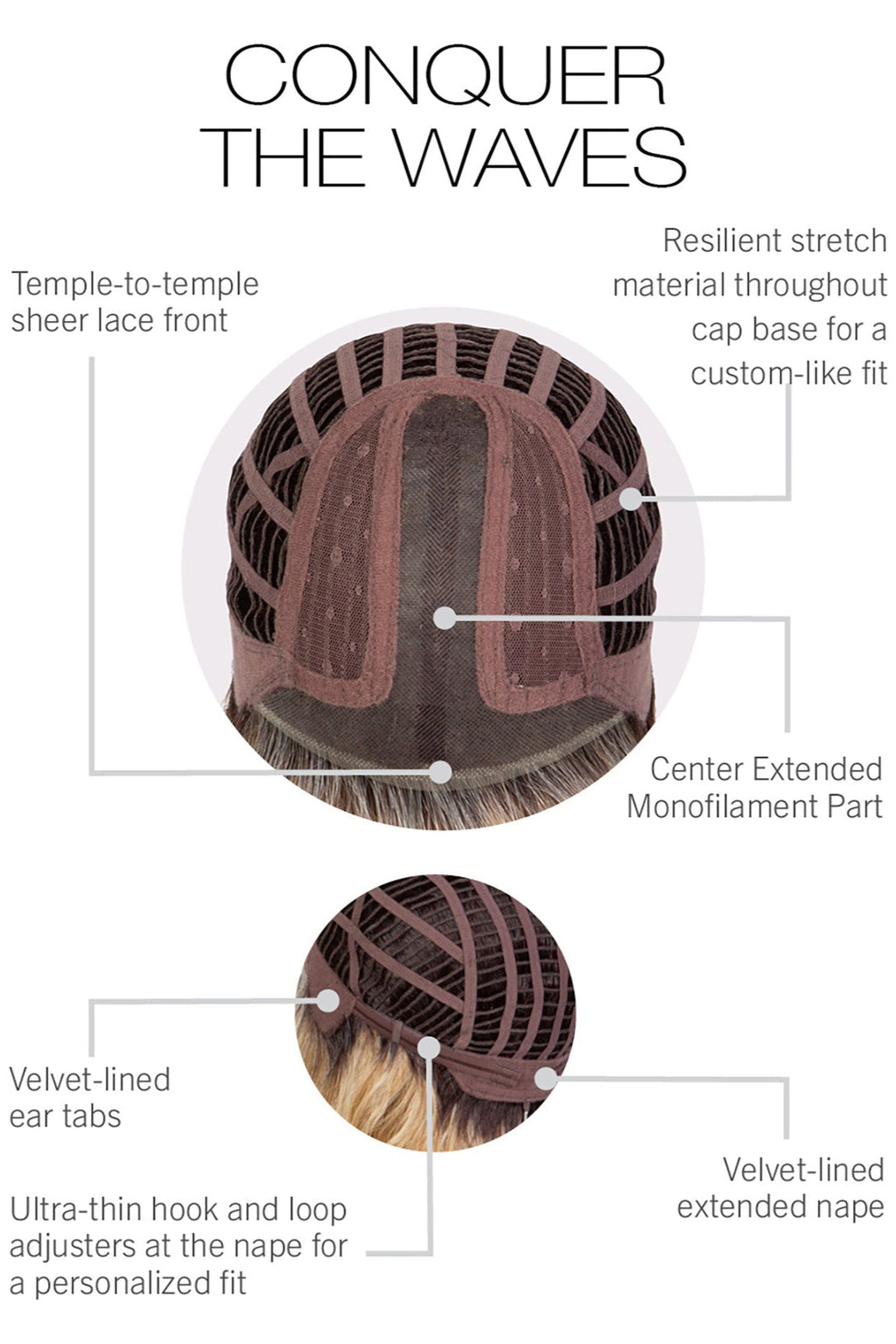• Extended Lace Front | Mono Part - for a very natural looking hairline and off the face styling, including an extended monofilament part
