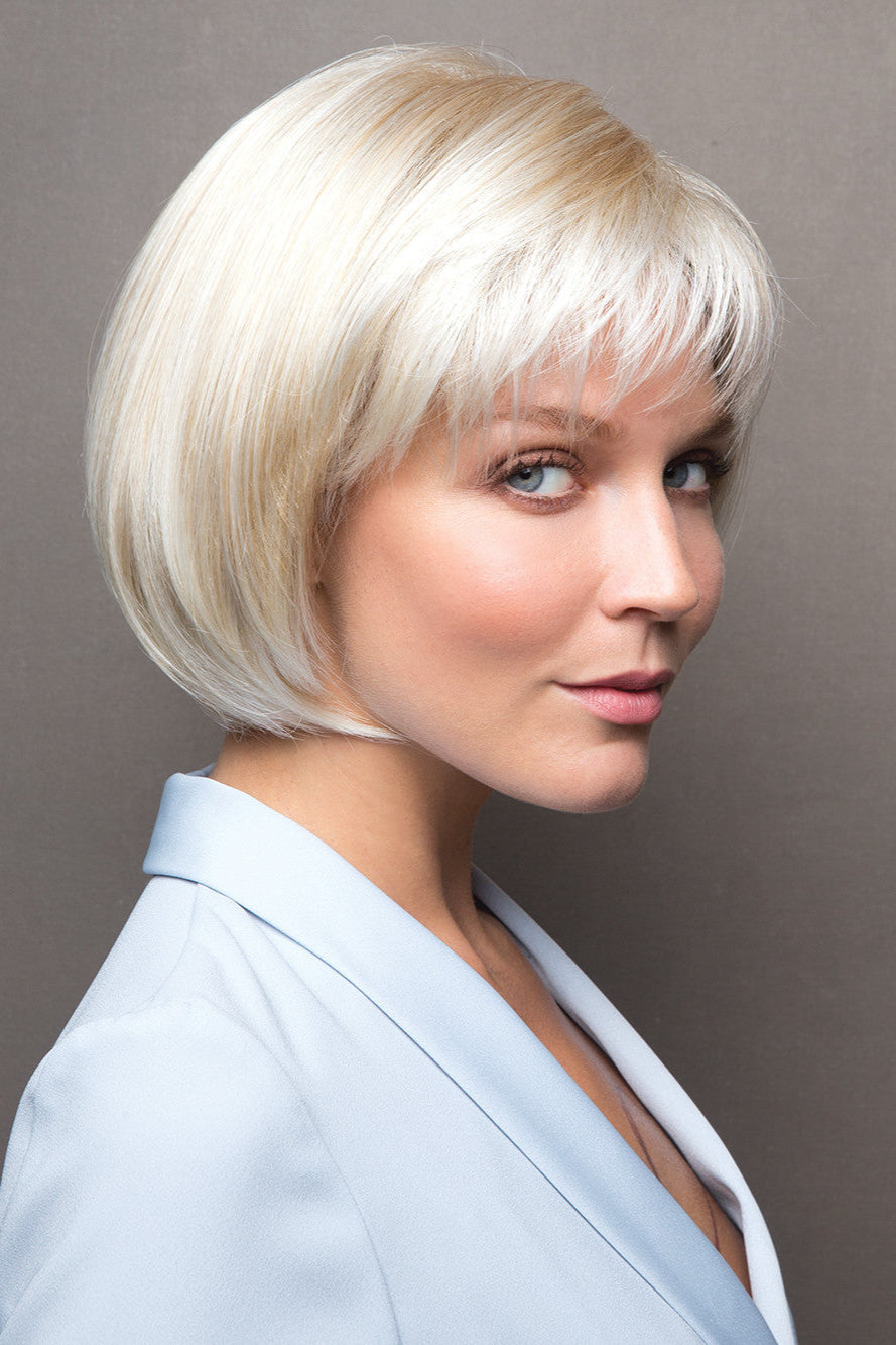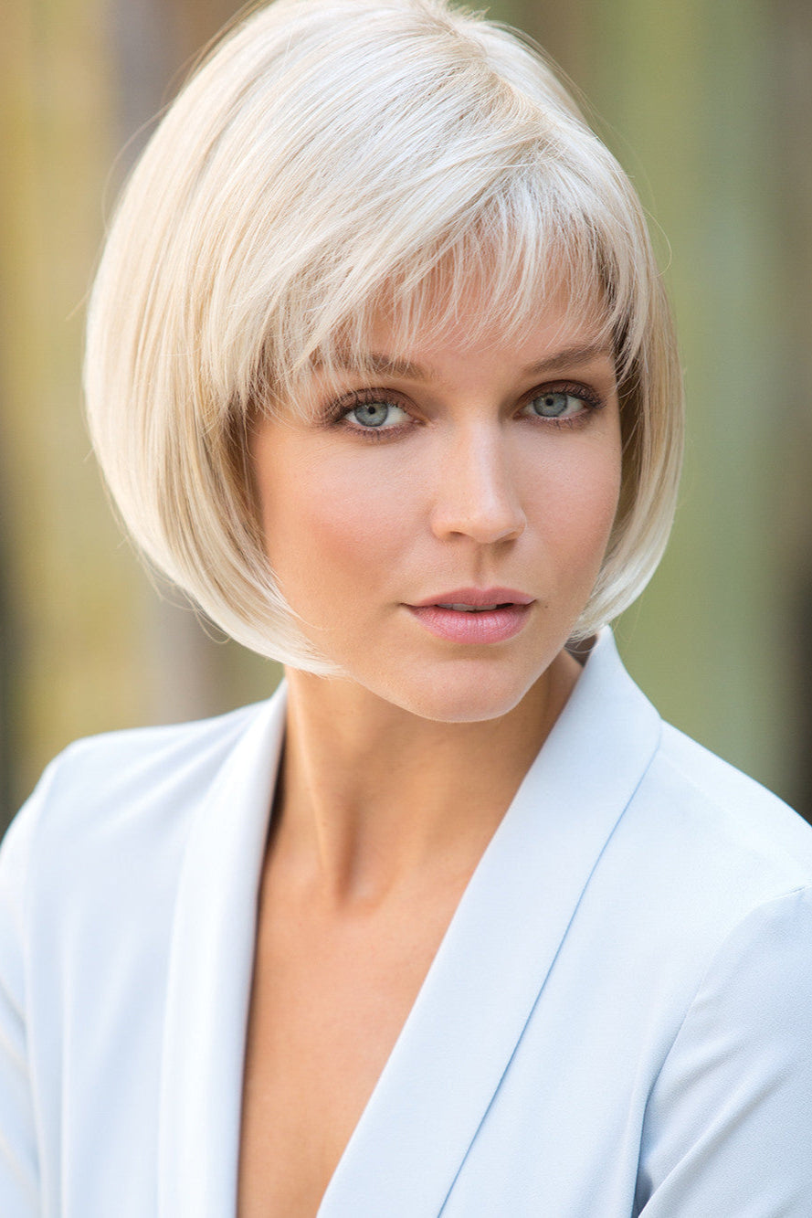 Cory by Noriko by Rene of Paris Synthetic Wig is a classic straight bob design with textured full front bang. Cory features in a lightweight basic cap construction, with wefted sides and back allowing comfort and maximum scalp cooling. Made with a permatease top which is a teasing, short haired, crimping effect on the roots to create more lift and volume.