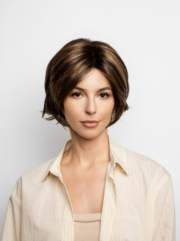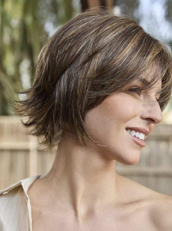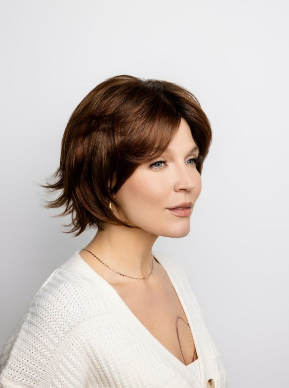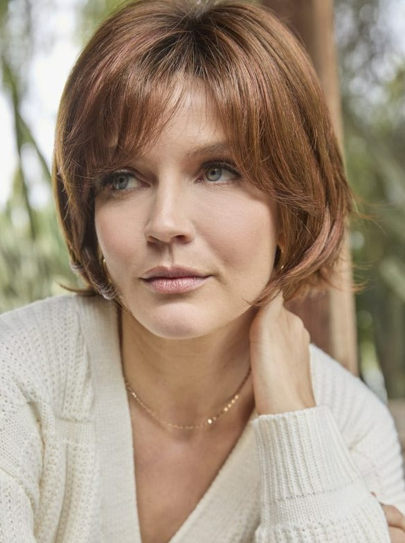 Experience the stunning style of Glenn by Amore, a synthetic wig featuring a charming bob cut and tapered fringe. With a monofilament cap and softnet material for superior air flow and comfort, this short wig offers a flawless hairline thanks to its wider lace front. Elevate your look with confidence and ease.