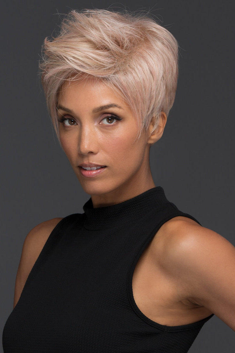 The Jett wig from Estetica is a gorgeous pixie length design with endless texture of layering and a swept over bang. Featuring a lace front design for off the face styling. The cap construction is wefted, allowing for a cool and comfortable fit. There is a soft, velvet area at the nape when the velcro tabs are attached. If you want to tighten the wig or make it looser, then simply adjust these to fit your head