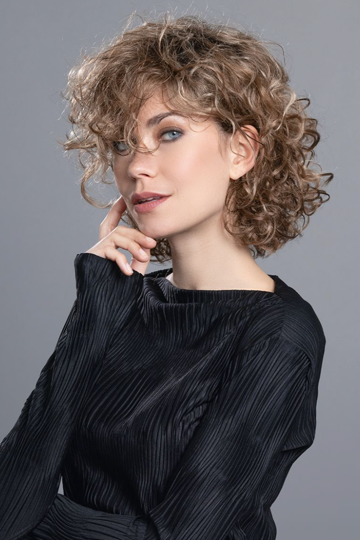 Loop by Ellen Wille Changes collection is a beautiful tousled curl chin length bob. Made with a monofilament parting and lace front with a wefted back design.