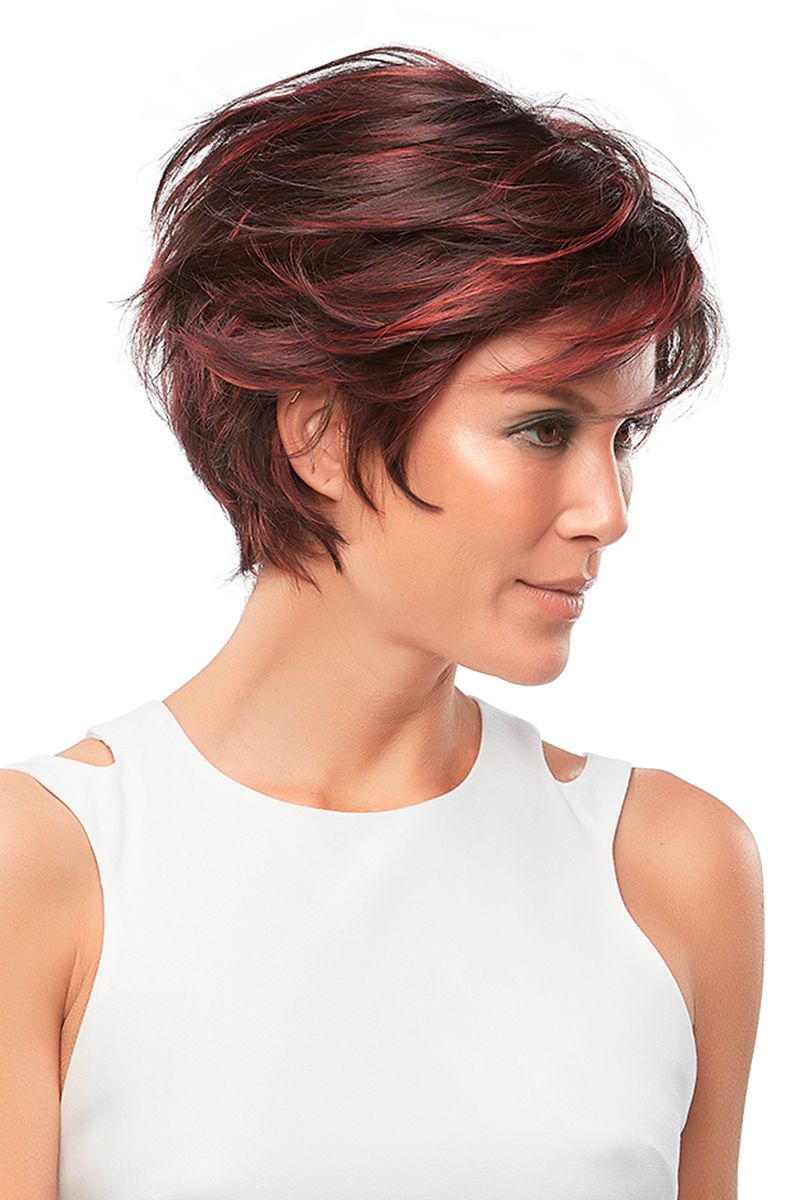 Mariska Petite by Jon Renau is a synthetic wig featuring a hand tied base, monofilament base and lace front for off the face styling. Mariska Petite a gorgeous textured layered short design wig with tapered neckline.