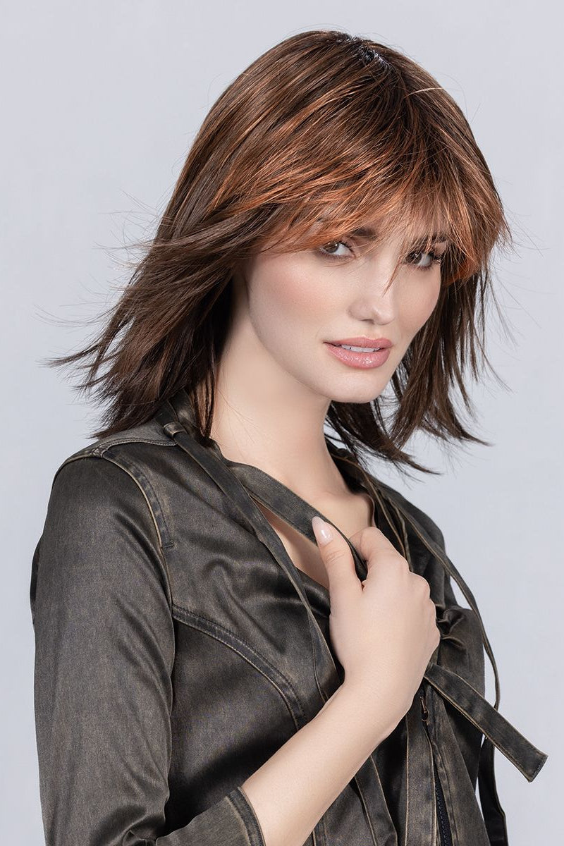 Rainbow, from the Ellen Wille Perucci Collection, showcases a vibrant shoulder-length design with gentle layers and a feathered fringe that brings a touch of playful elegance. This low-maintenance wig is made from premium synthetic fibers and features a monofilament crown for realistic parting, along with a wefted cap for breathable, comfortable wear. It's the perfect choice to effortlessly brighten your style with color and grace.