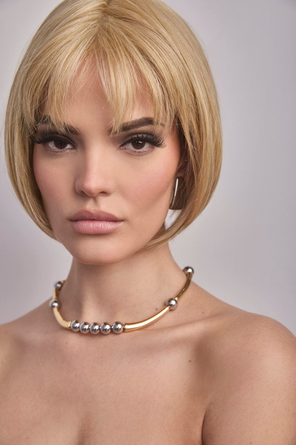Aria from Rene of Paris’s Alexander Couture Collection features a chic short bob shaped by subtle “invisible layers” for a flawless silhouette. Soft-cut bangs add a touch of sophistication, while heat-friendly synthetic fibers allow you to style it sleek or textured. Its cap design includes an extended lace front and lace part, ensuring a natural look. Adjustable tabs at the nape provide a snug, comfortable fit, making Aria both stylish and easy to wear.