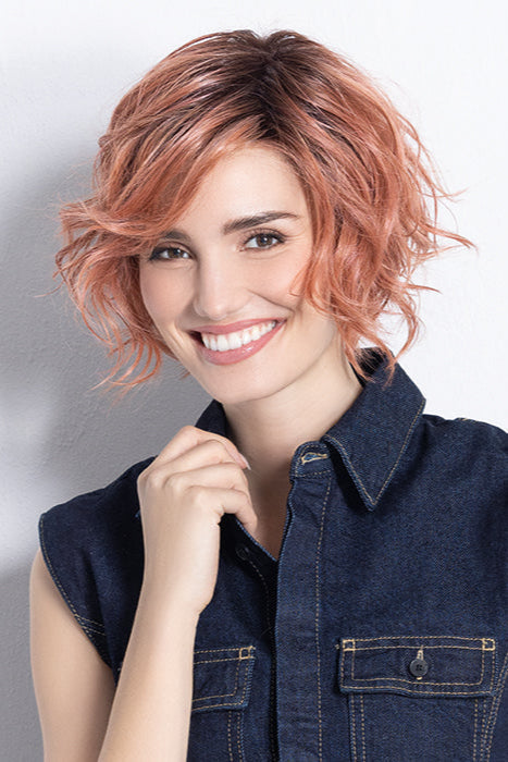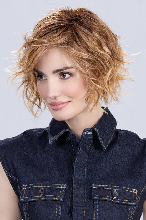 Cookie by Ellen Wille offers a mid-length shag with bold character. Featuring heat-friendly synthetic fibers from the Perucci Collection, it allows versatile styling options. Its textured, wavy layers produce a chic, tousled look. The lightweight, breathable open-weft cap ensures comfortable wear, while the extended lace front delivers a natural hairline. The monofilament part enhances realism by mimicking hair growth from the scalp.