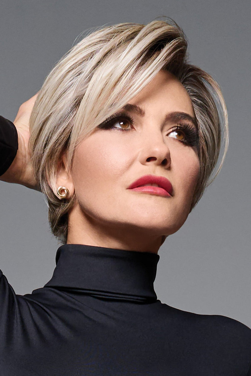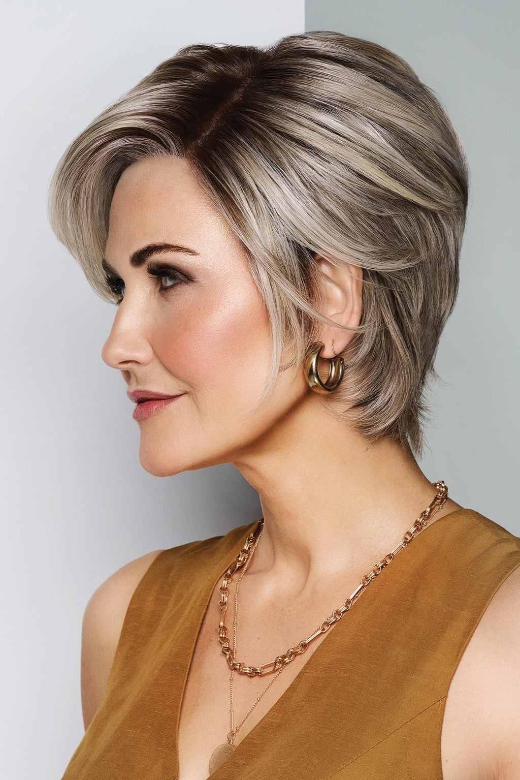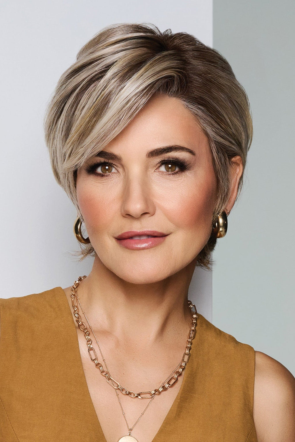 Posh Premiere by Raquel Welch brings effortless sophistication to your everyday style. This chic, short wig features a beautifully layered boycut with soft, face-framing bangs and tapered sides for a refined, polished look. The subtle volume at the crown enhances fullness, creating a natural and flattering silhouette. Made with HairUWear’s exclusive FeatherLite fiber, the synthetic strands have a unique hollow-core design, making them incredibly lightweight—even lighter than human hair. The fibers also retain their shape and can be heat-styled, giving you endless versatility.
