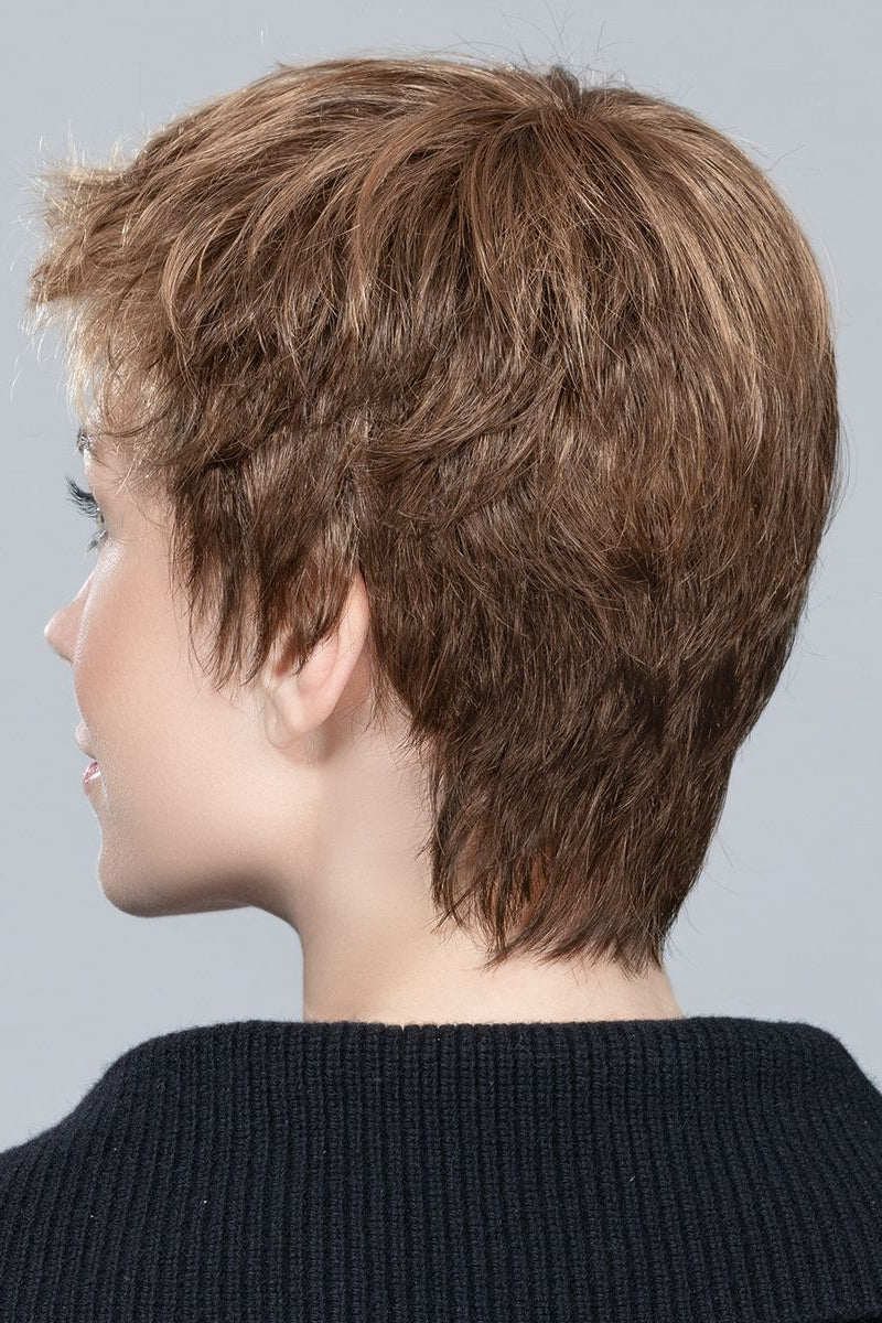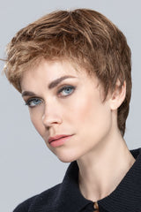 Risk by Ellen Wille is a short cut with textured layers and is made with the most natural, comfortable cap. A partial mono - round point keeps the crown area more natural. The lace front provides versatile styling options while ensuring a most natural looking hairline. An open wefted cap is made with special comfort material, as is the materials used for the lace front.. perfect for anyone with a sensitive scalp! Adjustable and lightweight. This wig is styled to create a feminine boy cut with versatility. To further personalize, add styling products and wear forward or spiky.