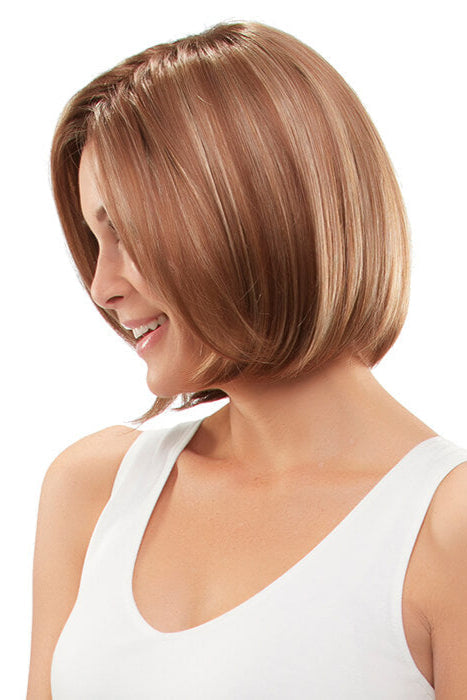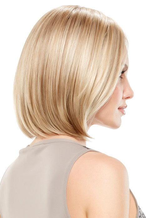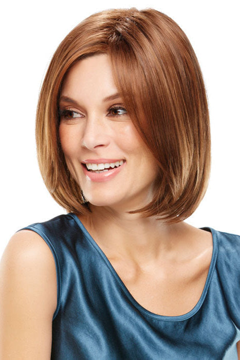 Kristen by Jon Renau synthetic wig is sleek face framing, mid-length bob. Kristen is part of the Smartlace collection which offers a lace front from ear to ear showcasing the most natural looking hairline and off the face styling ability. Whilst the open basic cap construction keeps you cool and creates comfort for everyday wear. Made with a permatease top which is a teasing, short haired, crimping effect on the roots to create more lift and volume.