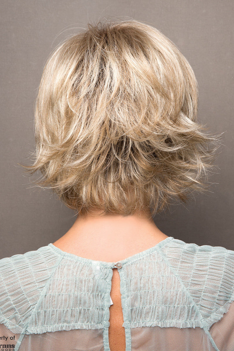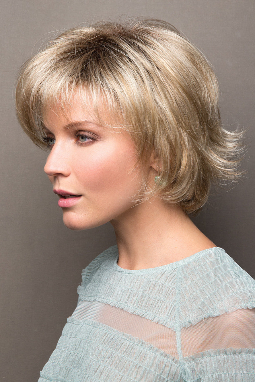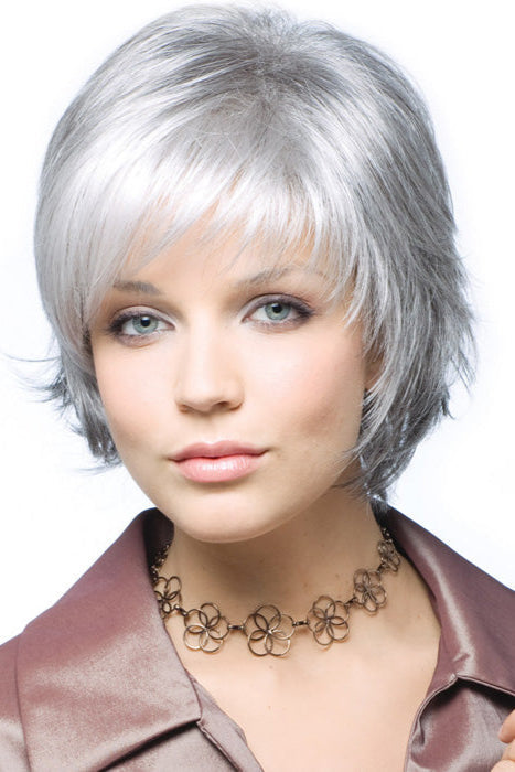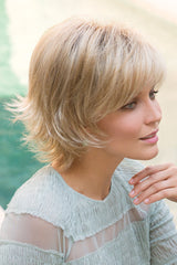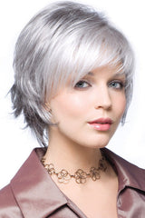 Sky Large by Noriko is a short, face-flattering bob with feathered layers, wispy ends and swept side bang. The open wefts cap construction allows for an airy cool design which is lightweight and ideal for everyday wear. Wefted caps adapt very well to the shape of the head and allow air to circulate. Made with a permatease top which is a teasing, short-haired, crimping effect on the roots to create more lift and volume.