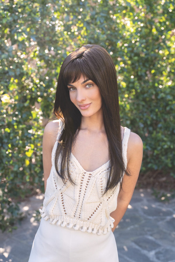 Fringe Flair by Amore by Rene of Paris Synthetic Hairpiece is easily attached with clips adding volume and length, and set with a monofilament top for styling versatility.