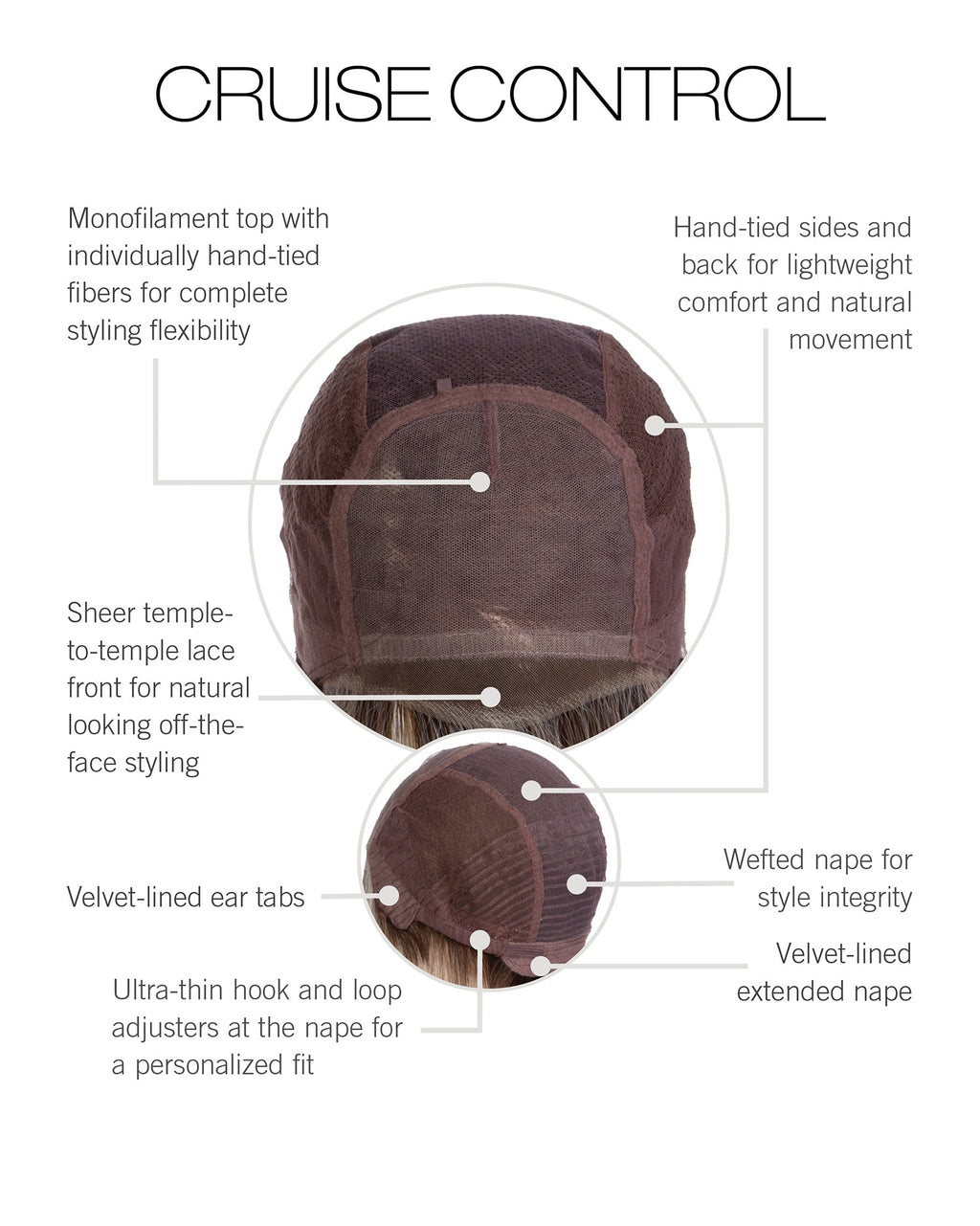 Cruise Control, from the Signature Collection by Raquel Welch, features a medium bob haircut that adds sophistication to your style. This wig is crafted with heat friendly synthetic hair and has delicate layering at the ends for a beautifully sculpted look. The hand-tied monofilament top and extended lace front create a natural hairline.