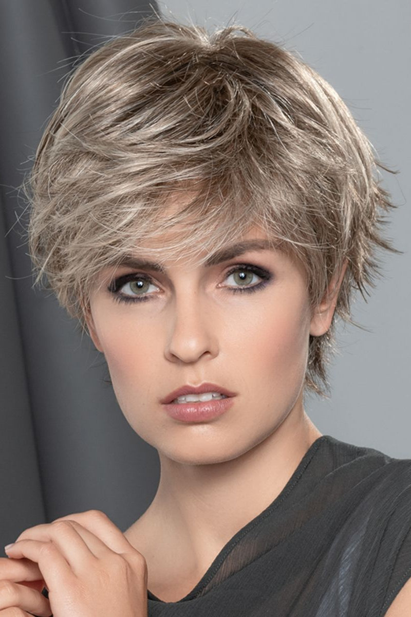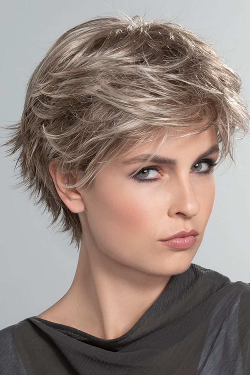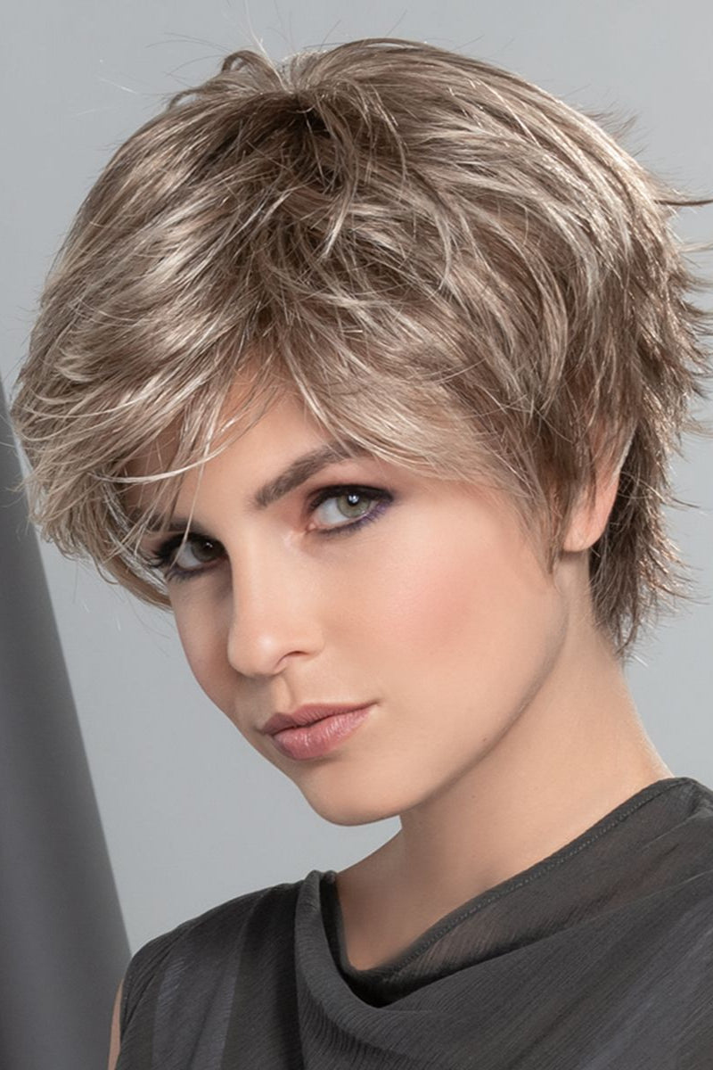 Emanating effortless style and naturalness, the Gilda Mono wig from Ellen Wille's Modixx collection is a must-have for those seeking a contemporary short shag cut. Its flirty and sophisticated design, complete with a lace front and full monofilament top, allows for ultimate versatility and realistic movement. The delicate wispy shag cut with flared ends at the back adds a touch of dimension and regrowth to the color, making a lasting impression. Inspire with this playful yet elegant wig that effortlessly catches the eye.