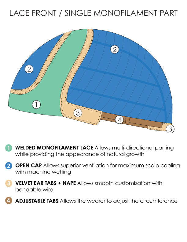 • cap design: lace front, monofilament left part, wefted back