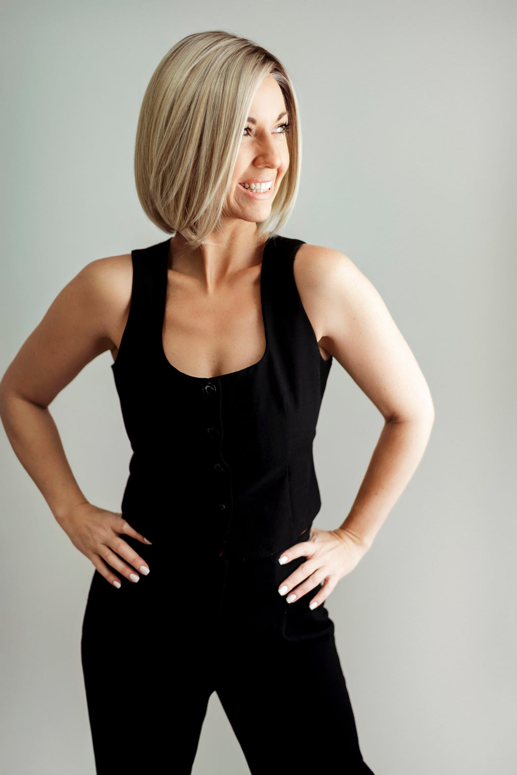 Allie is a chin-length bob with structured lines and feathered ends for a clean, modern look. The partially hand-tied cap allows for smooth movement, while the full monofilament top provides a natural appearance with flexible parting options. The extended temple-to-temple lace front ensures a seamless hairline, perfect for off-the-face styling. Velvet ear tabs with removable silicone tabs and a velvet nape with a removable silicone strip offer a secure, comfortable fit, while velcro adjusters allow for easy customization. Made from heat-friendly synthetic fibers, Allie offers styling versatility, whether you want a sleek finish or subtle texture. With no permatease and a low-density design, this wig provides a light, natural feel. Allie is the perfect choice for anyone seeking a refined, stylish bob.