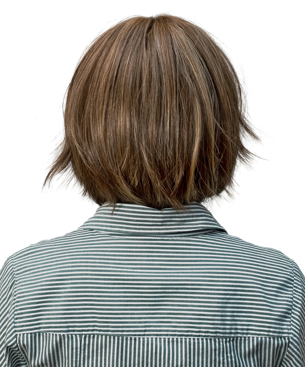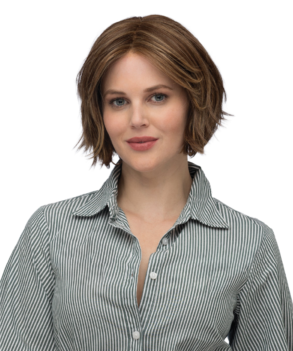 Monofilament Top with Lace Front | Clover is your go-to for an effortlessly styled look straight out of the box. This chin-grazing cut brings a relaxed, everyday feel with its airy shape and soft, piece ends that move naturally. Designed to mimic real hair growth with a lace front and monofilament top, it offers a believable finish from every angle. Whether you prefer a sleek polish or a more undone texture, its Heat Defiant fibers give you the freedom to restyle with tools up to 320°F (160°C).