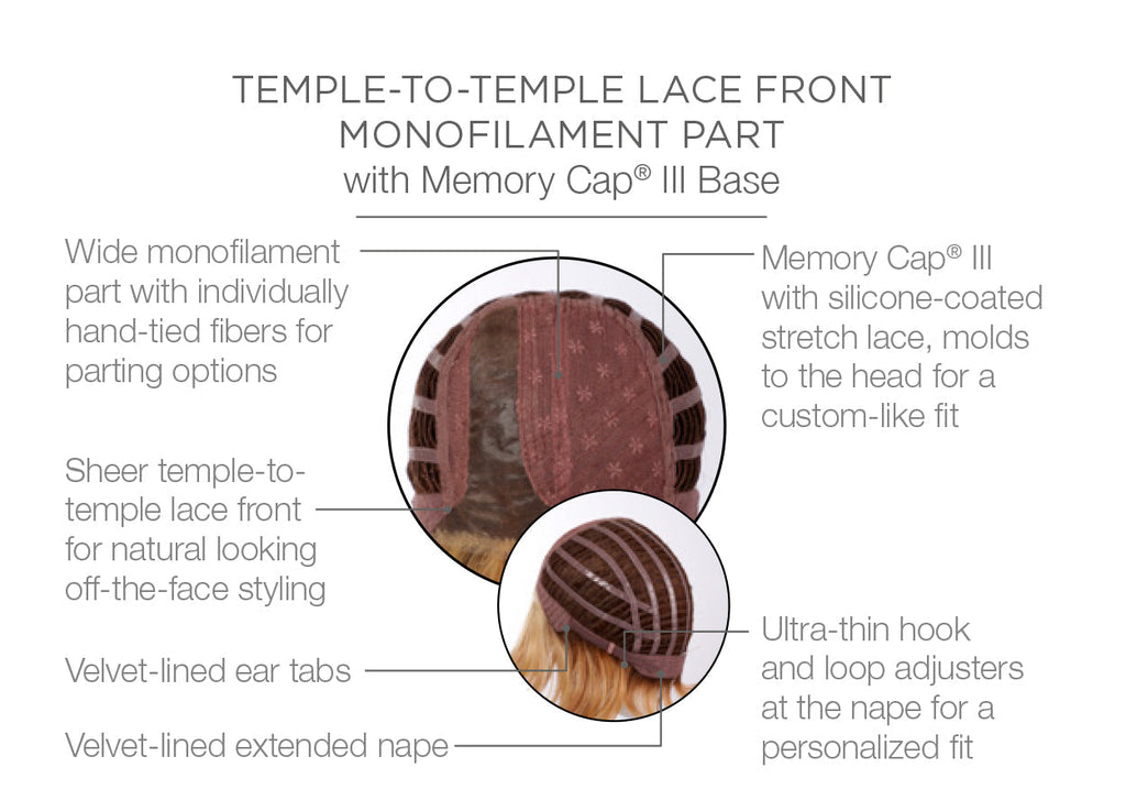 • base design: monofilament part – Creates the illusions of natural hair growth and allows you to part the hair in any direction.