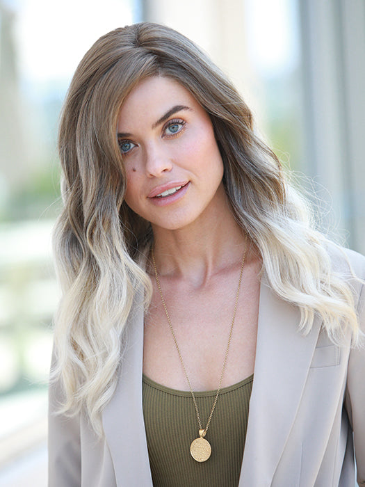 Sarah by Jon Renau features a long wavy textured design. Sarahs base construction consist of detailed a 100% hand-tied cap where each and every hair has been individually weaved, an invisible lace front which blends naturally against your hairline for off the face styling and a monofilament top that resembles the most realistic hairline and enables parting versatility and multi-directional styling. *ombre colours prices will vary
