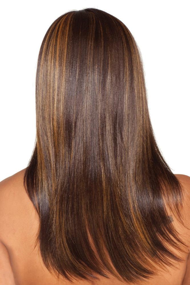 WP-LINDSAY-V is a 19 inch layered straight style with swept bang. Its layers, when curled, enable you to have a fuller look to the hair that enhances the natural beauty. Weave cap gives a convenience of a cap while offering a full style of a wig. Its high heat resistant fiber not only curls well, but also keeps the curl longer to keep the hair look beautiful.