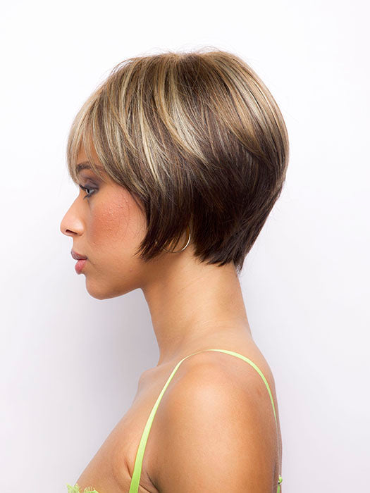 Audrey by Rene of Paris part of the Hi-Fashion collection is a smooth layered chin length bob. Featuring in a lightweight basic cap construction, with wefted sides and back allowing comfort and maximum scalp cooling. Made with a permatease top which is a teasing, short haired, crimping effect on the roots to create more lift and volume.