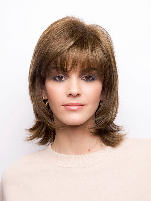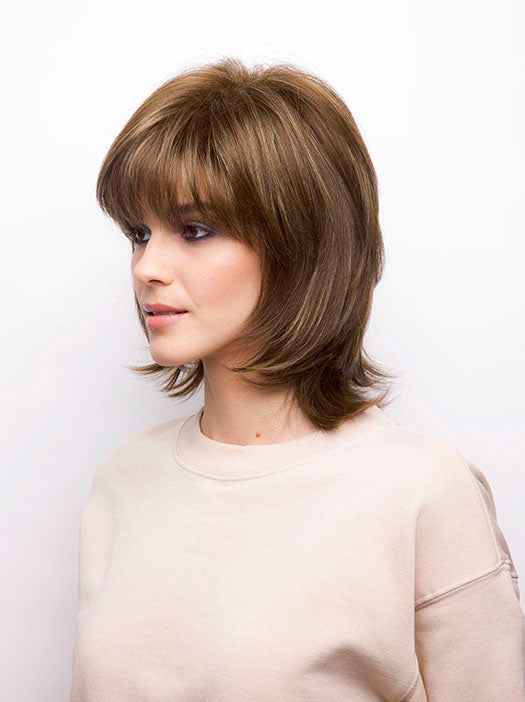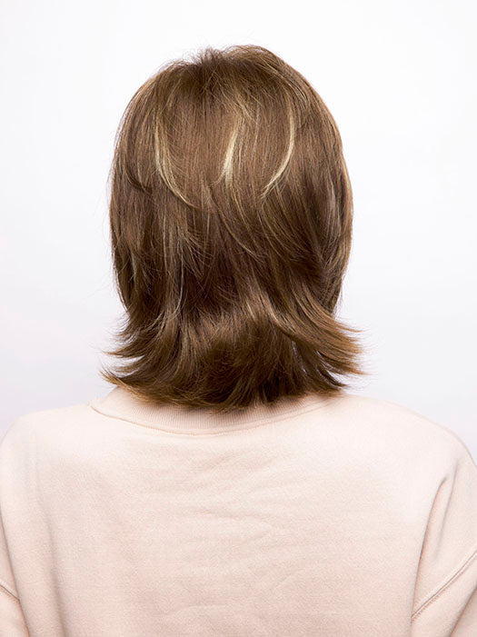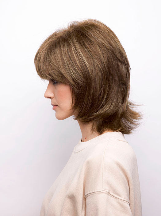 Bailey by Rene of Paris is a flipped out textured shoulder length design. Featuring in a lightweight basic cap construction, with wefted sides and back allowing comfort and maximum scalp cooling. Made with a permatease top which is a teasing, short haired, crimping effect on the roots to create more lift and volume.