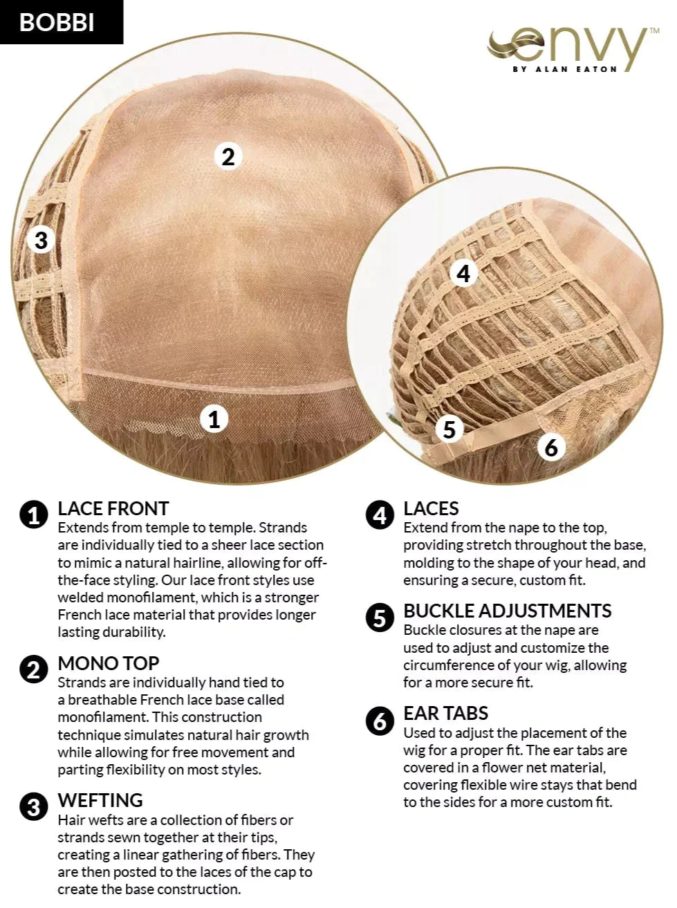 • Monofilament Top - Creates the illusions of natural hair growth where the hair is parted.