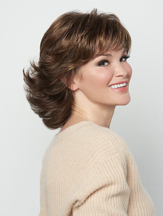Breeze by Raquel Welch features textured layers that give you all-over volume and flicked out ends for added design. Featuring in a lightweight basic cap construction, with wefted sides and back allowing comfort and maximum scalp cooling. Made with a permatease top which is a teasing, short-haired, crimping effect on the roots to create more lift and volume.