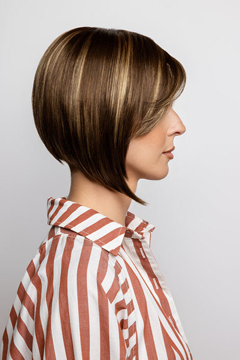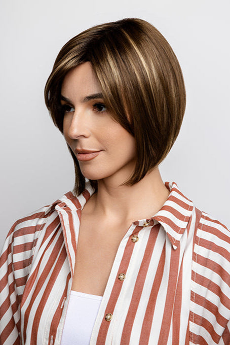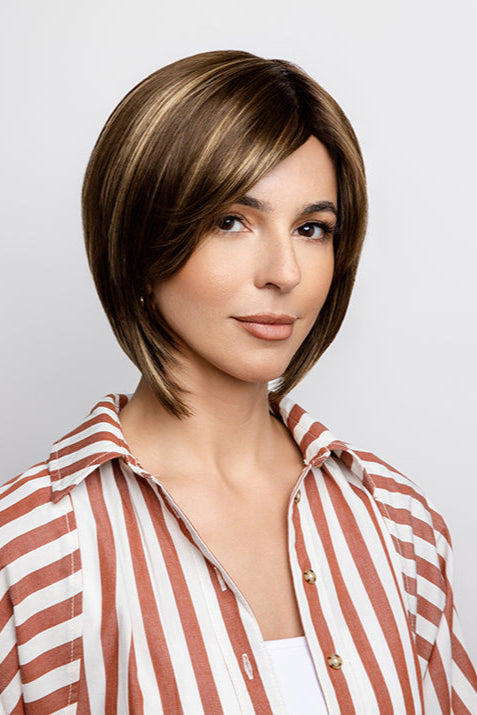 Codi by Amore is an angled bob and side swept side bang. Codi features a double monofilament top gives you the most natural look and parting options and featuring a open weft cap construction allowing for an airy cool design which is lightweight and ideal everyday wear.