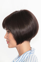 Cory by Noriko by Rene of Paris Synthetic Wig is a classic straight bob design with textured full front bang. Cory features in a lightweight basic cap construction, with wefted sides and back allowing comfort and maximum scalp cooling. Made with a permatease top which is a teasing, short haired, crimping effect on the roots to create more lift and volume.